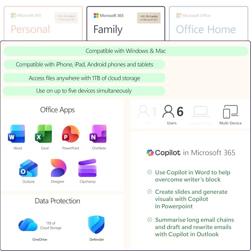 - MICROSOFT 365 FAMILY | up to 6TB of cloud storage, advanced security for your data and devices, and powerful productivity and creativity apps with AI¹, all in one plan.