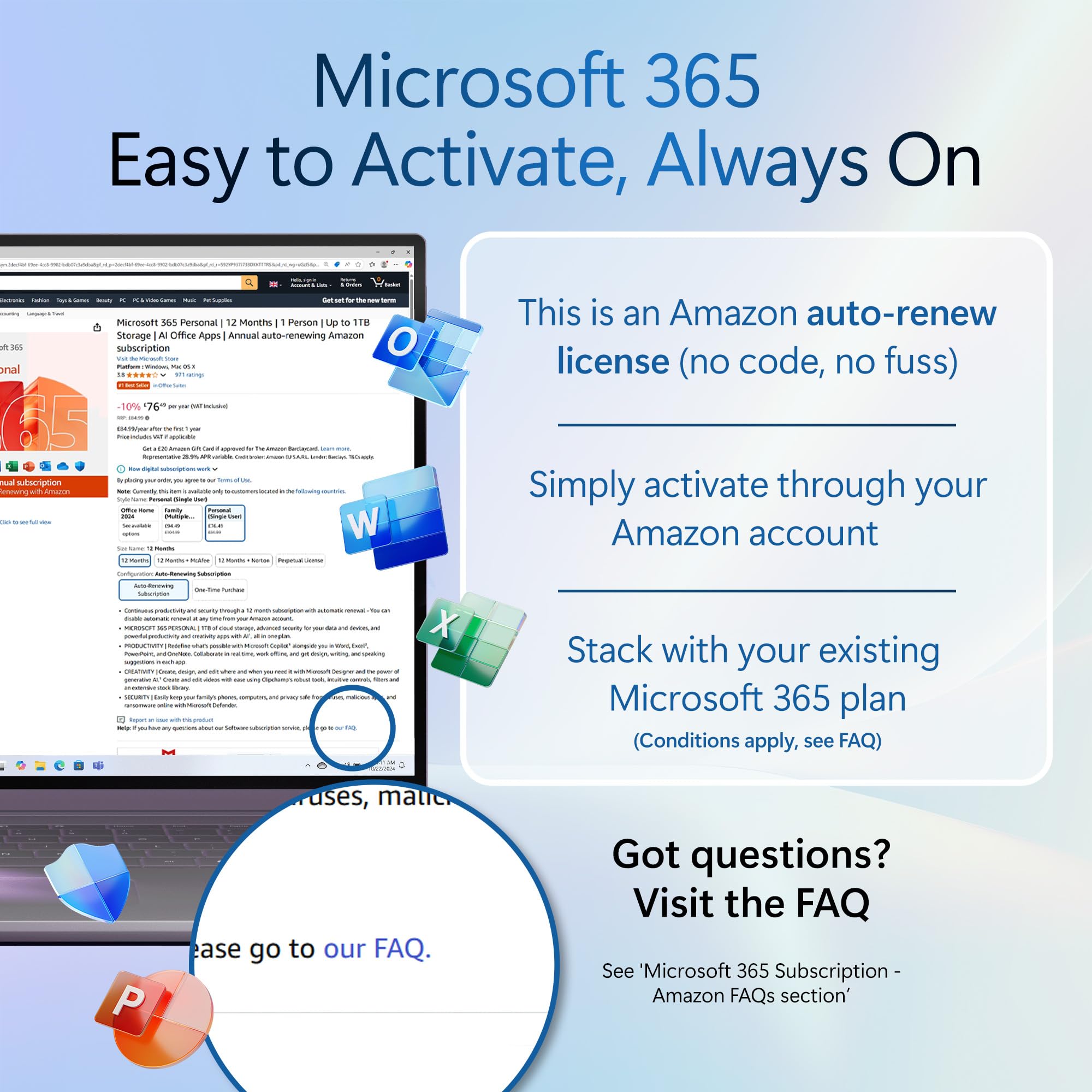 - Continuous productivity and security through a 12 month subscription with automatic renewal - You can disable automatic renewal at any time from your Amazon account.