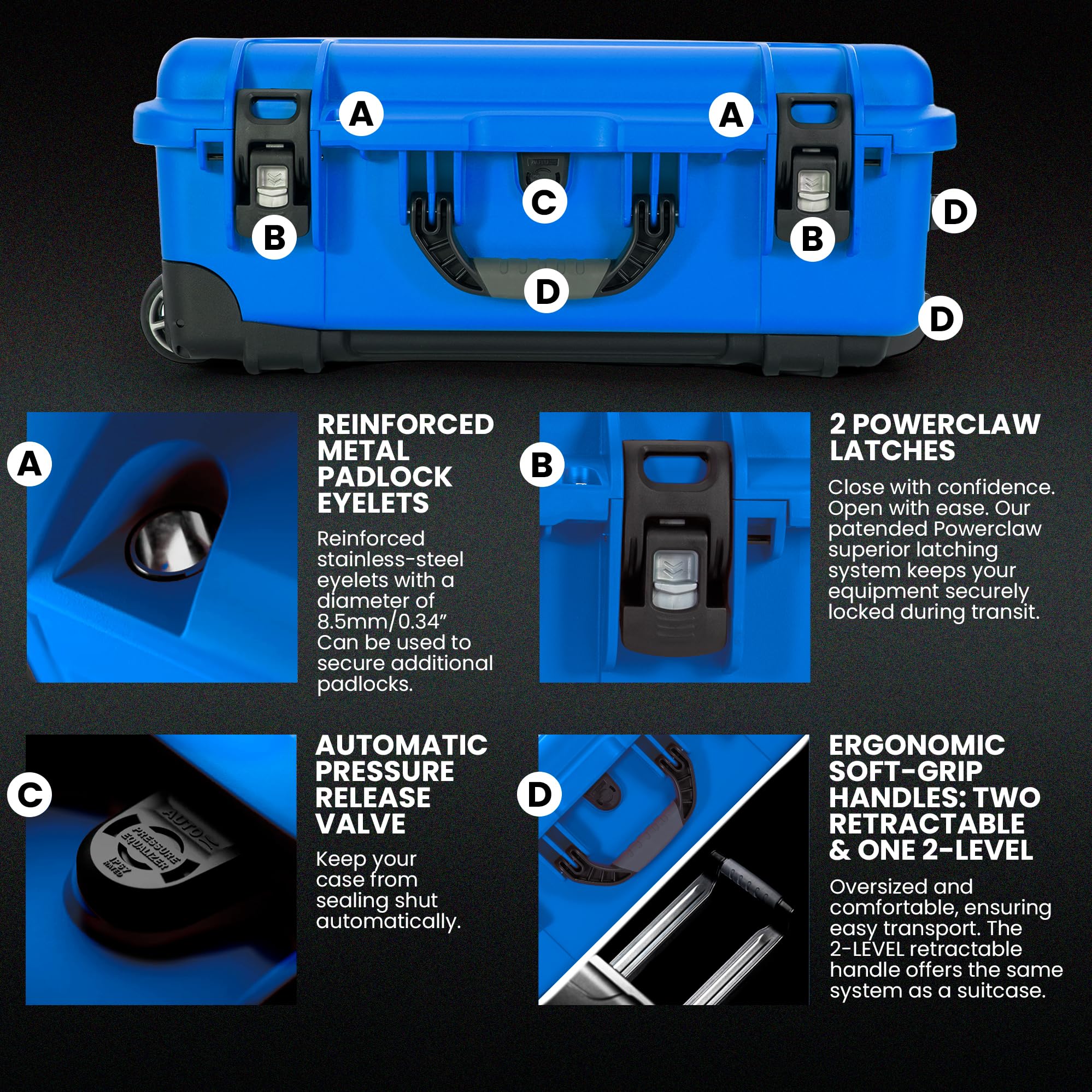 - PORTABLE AND WHEELED: The NANUK hard-shell camera case, equipped with a two-stage telescopic handle and smooth-rolling polyurethane wheels, is easy to transport and approved as cabin luggage. Integrated hinges keep the lid securely open, providing quick and convenient access, ideal for photographers and professionals.