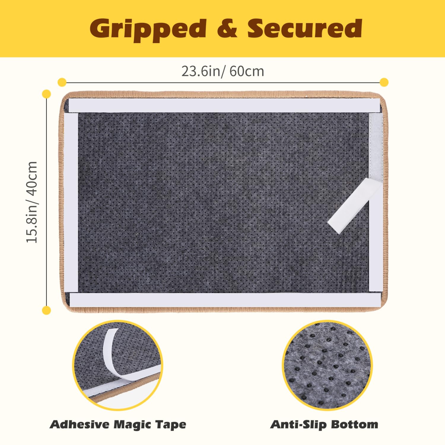 - Easy to Attach: Designed with high-strength magic tape on the back, it can be easily attached to any surface, such as floors, furniture, or walls. Stable and secure, it won't slip. Cats stretch, scratch and relax on the Nobleza cat scratch mat.