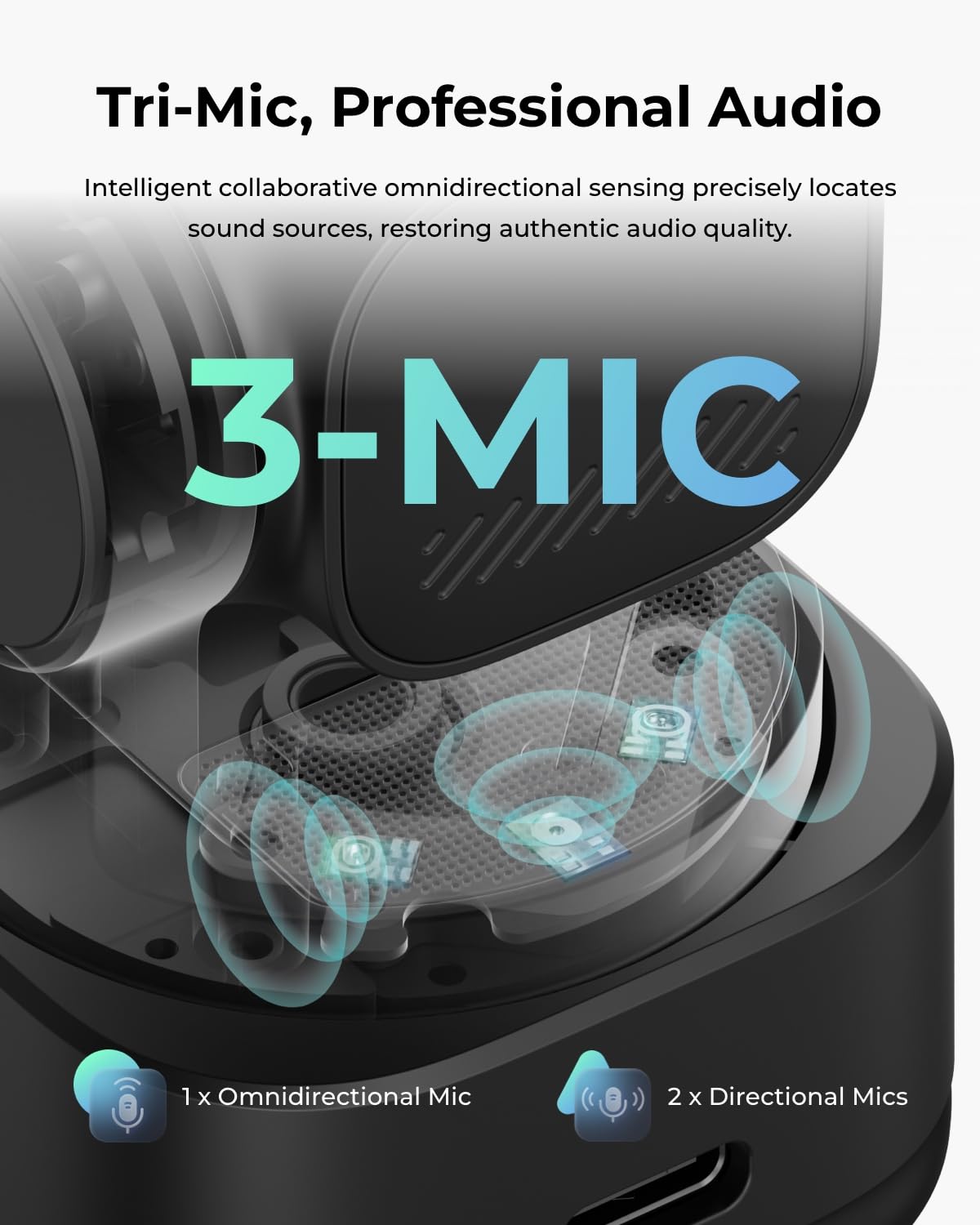 - 【AI Spatial Audio with Voice Locator】Featuring a tri-mic array with directional MEMS mics, this webcam with microphone leverages AI voice locator captures your voice with spatial precision and reduces background noise for clear, immersive audio. Five professional audio modes adapt to various use cases, including audio-focused scenarios like ASMR or critical professional calls.