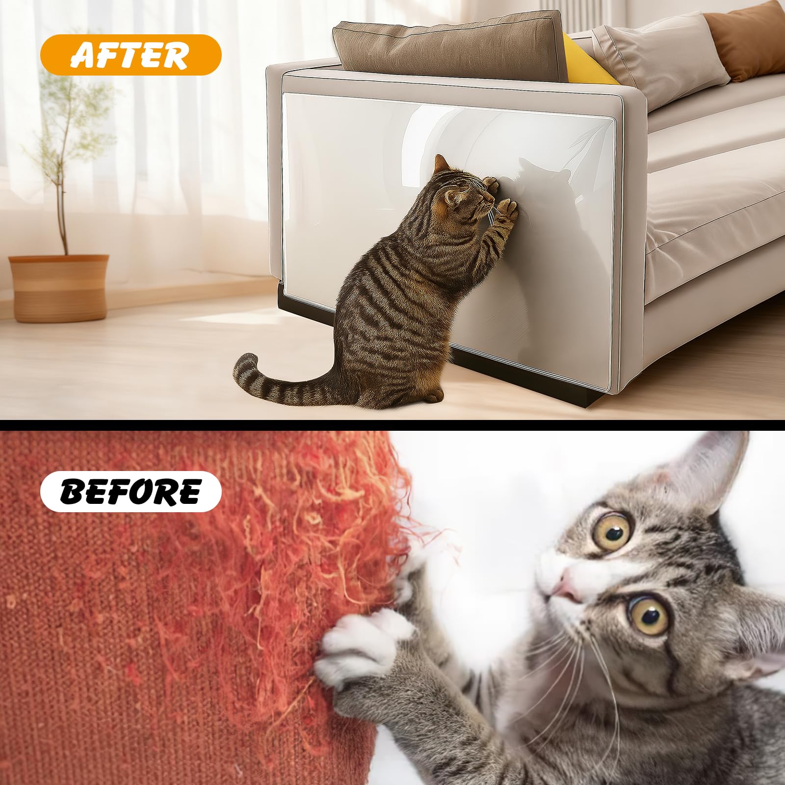 - 【Thickened, Scratch-Resistant】Made of 0.2mm thickened high-quality vinyl material (twice as thick as common sofa protector for cats), it improves durability and scratch resistance of cat scratch pad.