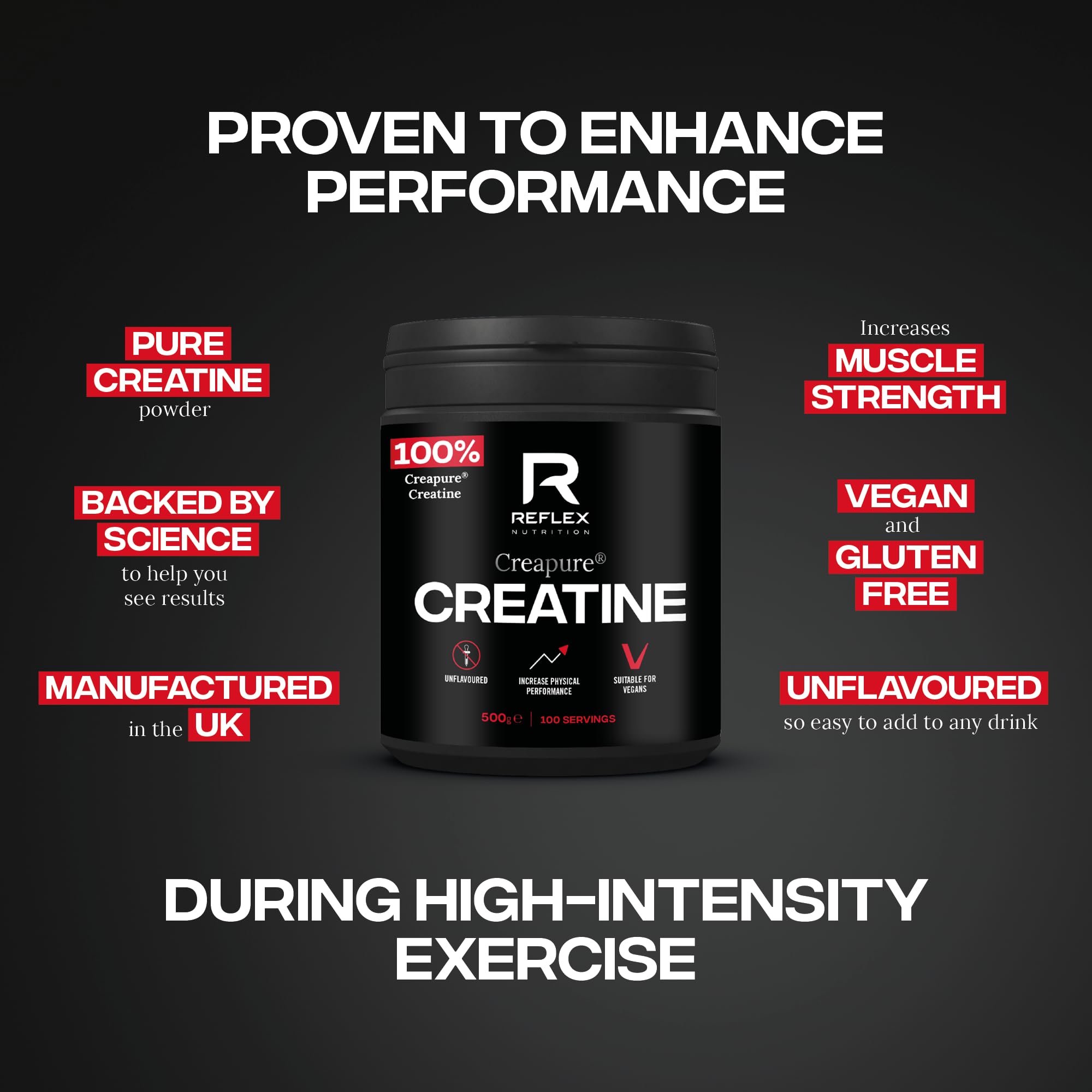 - Increases Muscle Power & Speed: Reflex Nutrition creatine is a pure creatine supplement aiding the body's natural stores of creatine - It helps provide energy to muscle and can help enhance physical performance when fatigued