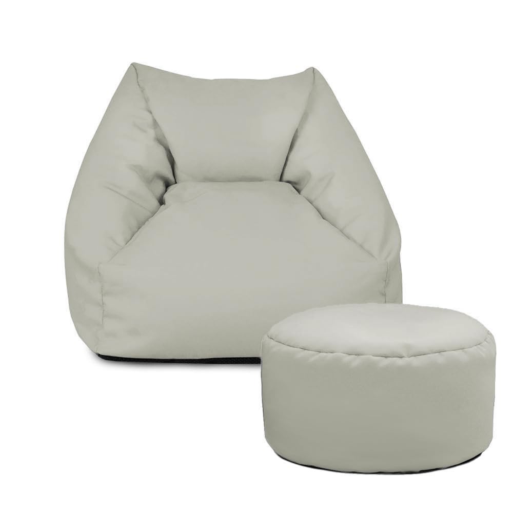 rucomfy Beanbags Snuggle Bean Bag Chair - Kids Armchair Beanbag Seat with Filling Included - Childrens Bedroom Furniture for Boys and Girls - 50 x 46 x 48cm (Platinum Grey, with Footstool)