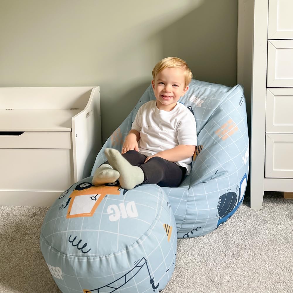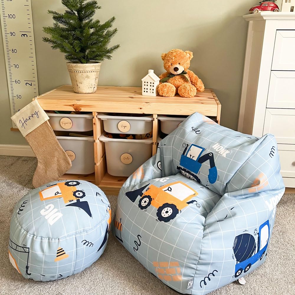 rucomfy Beanbags Snuggle Kids Bean Bag Chair - Toddler Armchair Beanbag Seat - Childrens Bedroom Furniture for Boys & Girls - Arrives Filled - 50 x 60 x 60cm (Dig It, Beanbag Only)