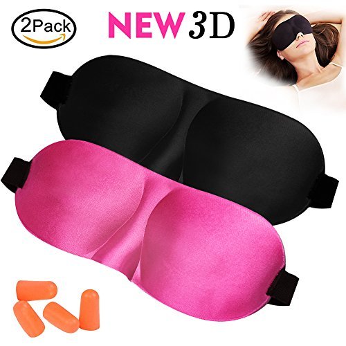 Sleep Mask Silk 3D Contoured Eye Masks for Sleeping Travel Nap Meditation Shift Work, Night Blindfold Eyeshade for Men Women Kids, Ear Plugs Included, Super Comfortable, 2 Pack (Black+Pink)