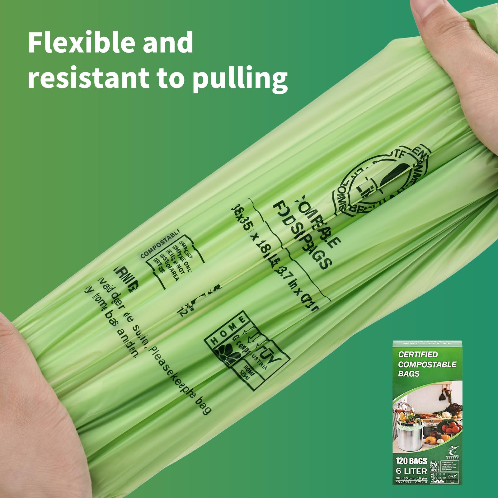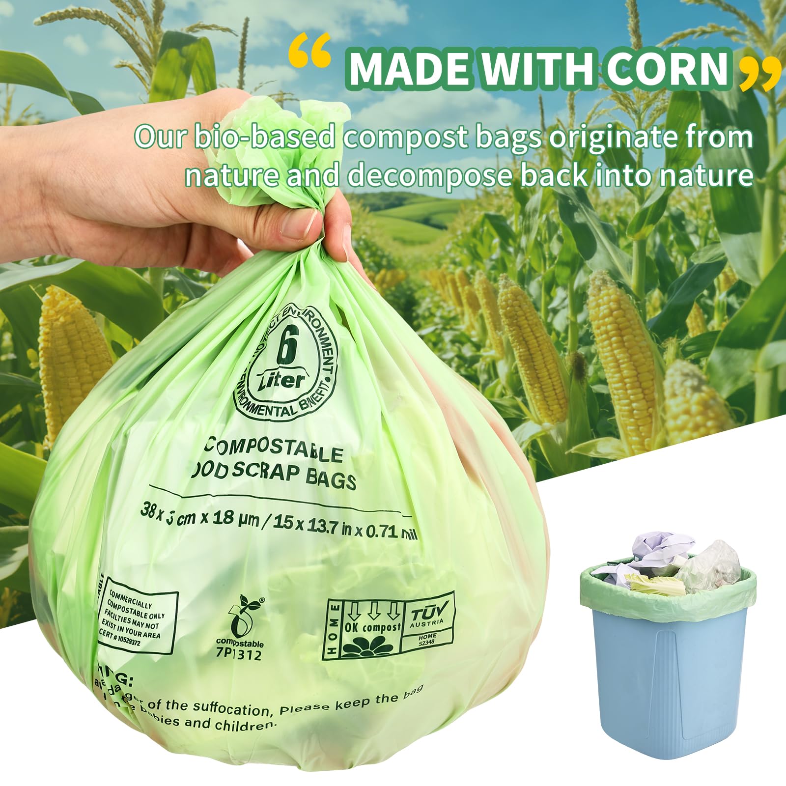 Small Biodegradable Bin Bags 6L with EN13432, Food Waste Bags Compostable Caddy Liners 6L/5L/4L/3L