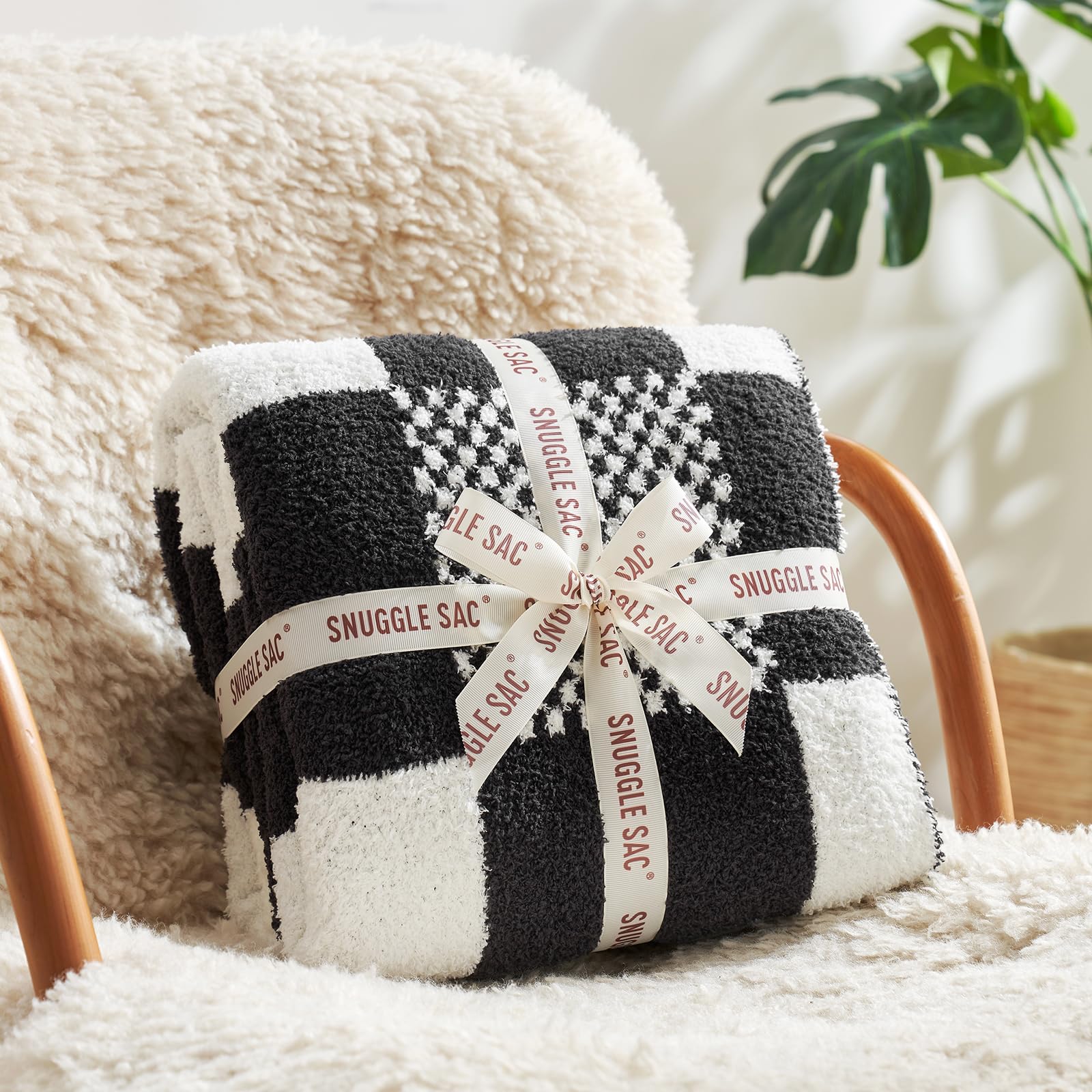 Snuggle Sac Checkered Blanket, Animal Pattern Throw Blankets Plaid Throw Blanket for Couch Microfiber Soft Throw Blanket for Sofa, Chair, Bed (Checker Black White, Twin(60"x80"))