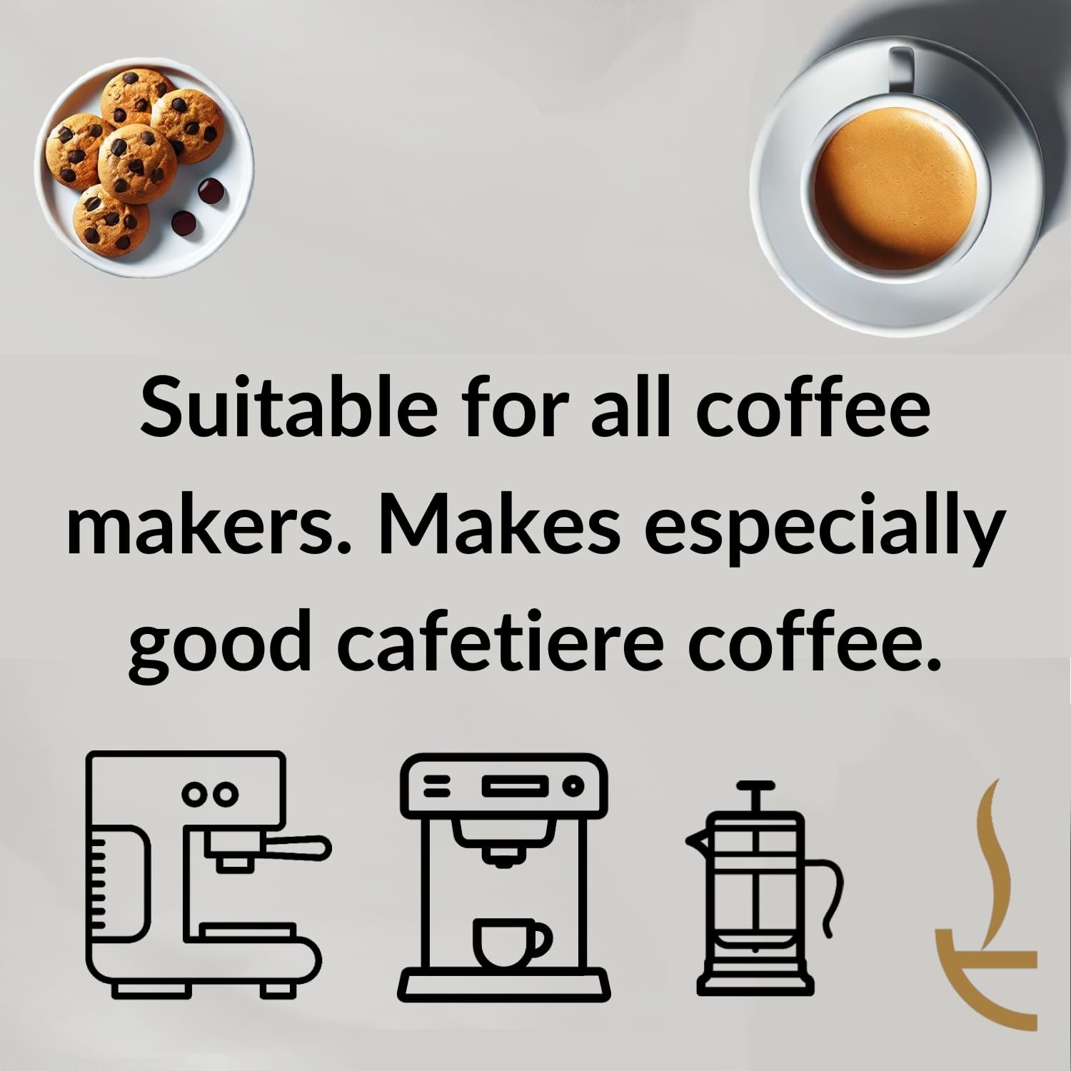 - Versatile Brewing Options: Perfect for any time of day, our medium roast coffee beans deliver a lovely coffee experience, especially at breakfast. Suitable for all coffee makers, including cafetiere, percolators, Aeropress, and stove-top espresso machines, offering excellent filter coffee