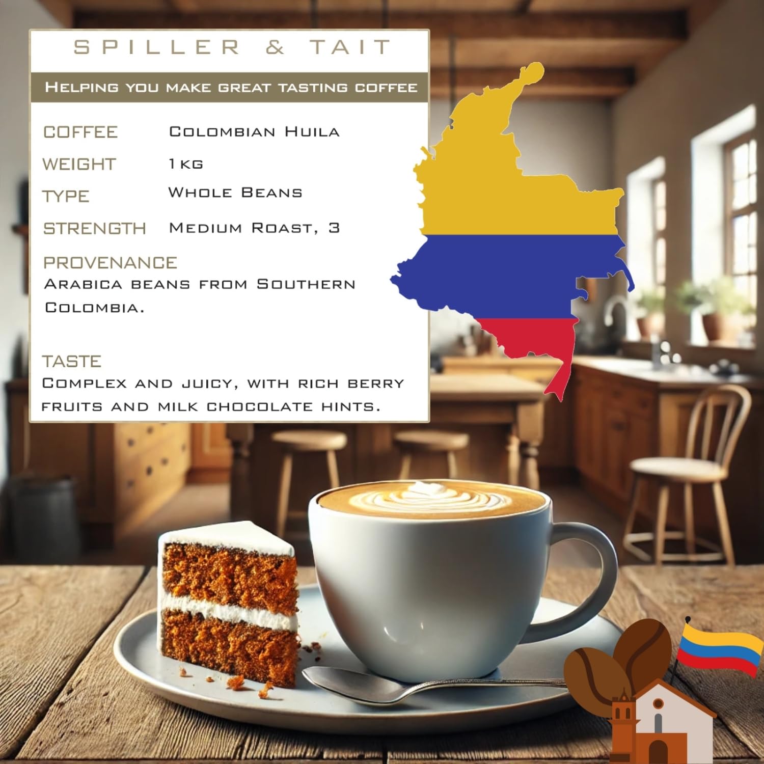 Spiller & Tait Pure Colombian Huila – Coffee Beans 1kg Bag – Top Speciality Columbian Coffee Beans Roasted in the UK – Gourmet Blend for Great Tasting Brew at Home