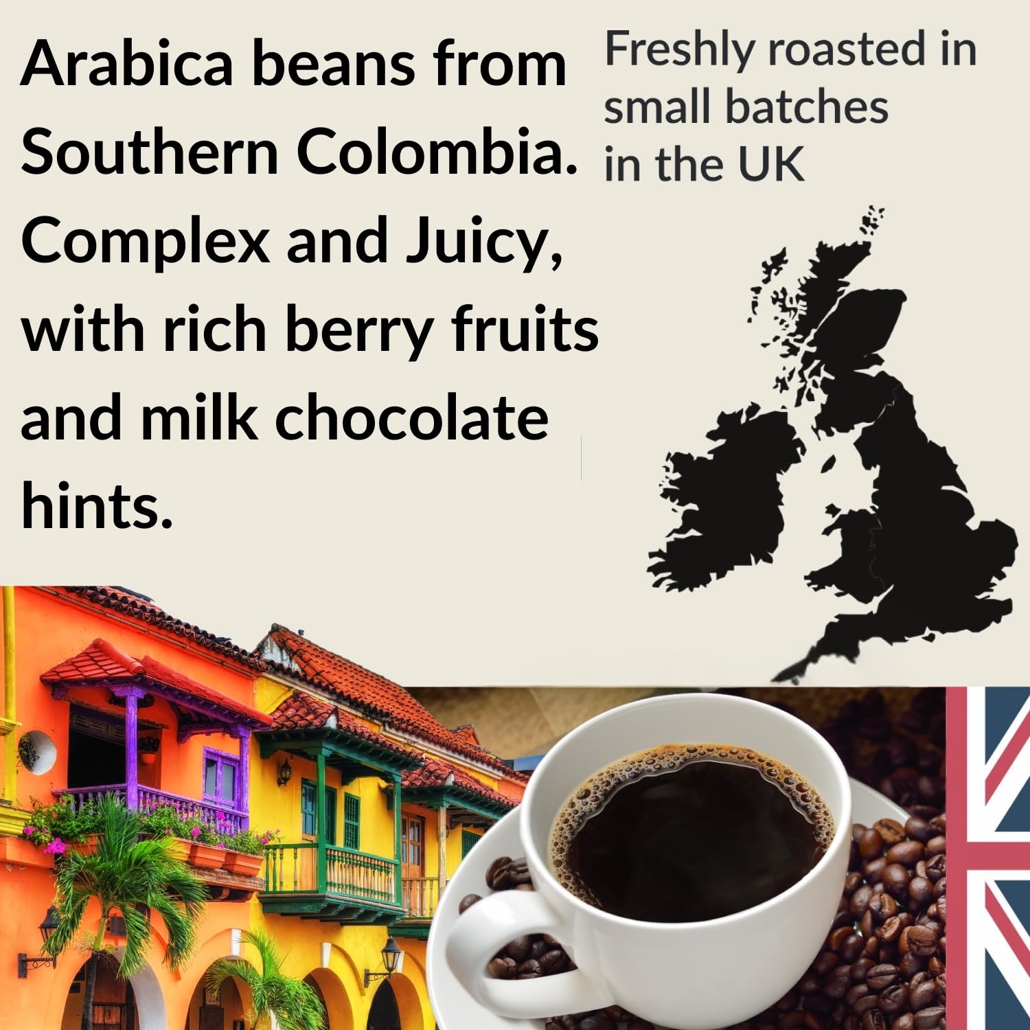 - Smooth Flavour Experience: Enjoy a smooth, balanced flavour with our Colombian coffee beans, featuring a juicy body and medium sweetness. Subtle notes of blackcurrant and forest berries elevate this coffee, perfect for those seeking a refined taste in their coffee set