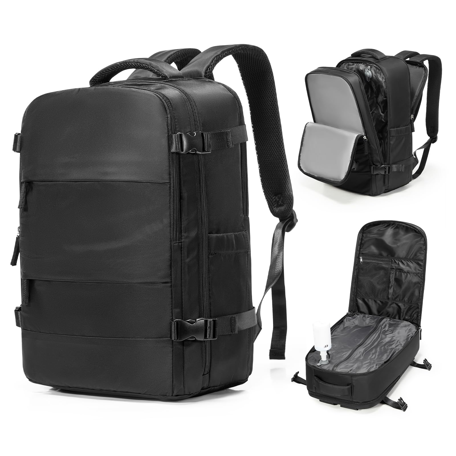 SZSYCN Vacuum Backpack Travel Bag With Pump New Ryanair Cabin Bags 40x30x20 Underseat Carry On Baggage with Compression System For Flights Waterproof Laptop Backpack,Black M