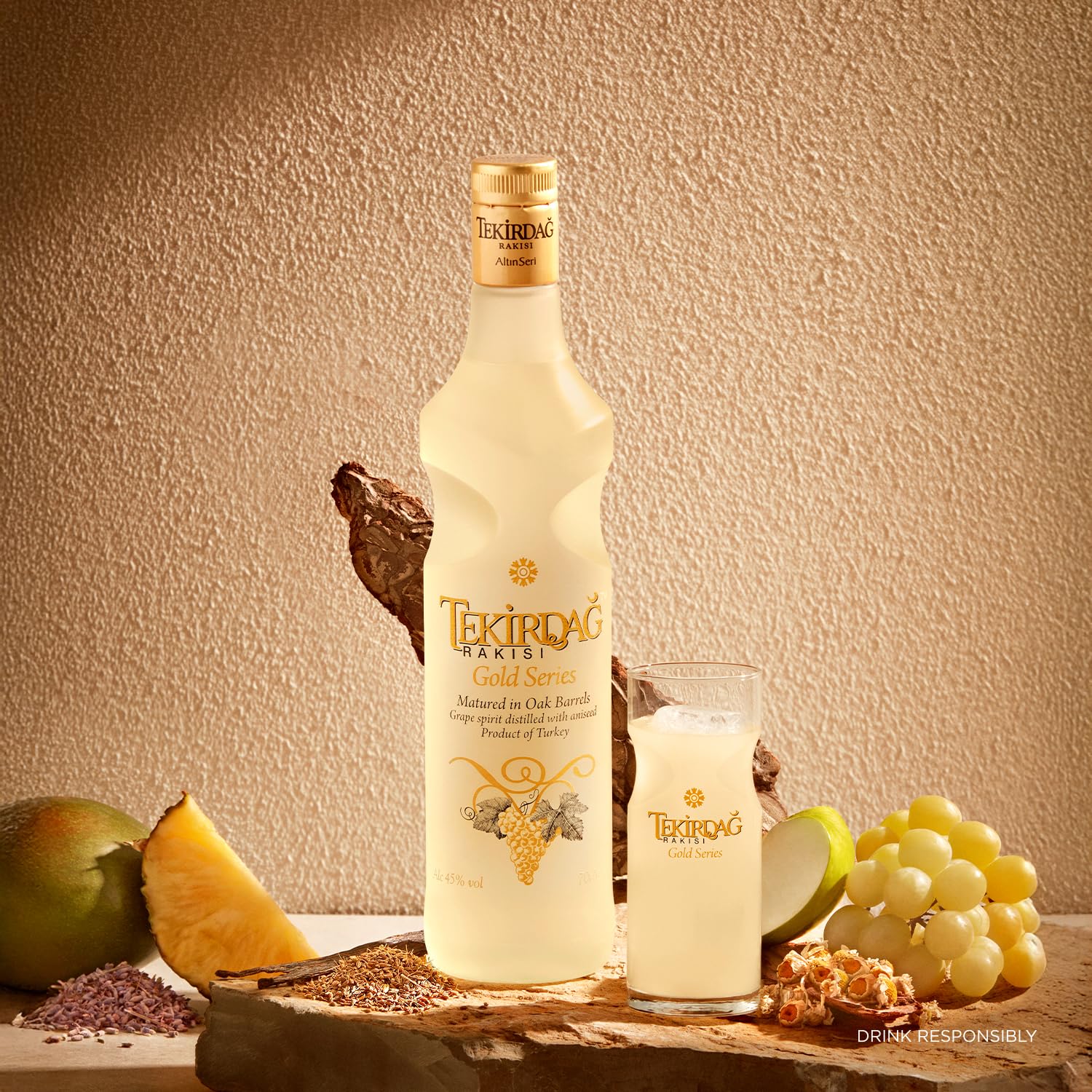 - Golden Colour and Rich Taste | The extended ageing process in oak barrels gives Tekirdağ Rakısı Gold Series its signature golden hue and an intense, well-rounded taste. The result is a spirit that feels both elegant and full-bodied, perfect for those who appreciate a deeper flavour.