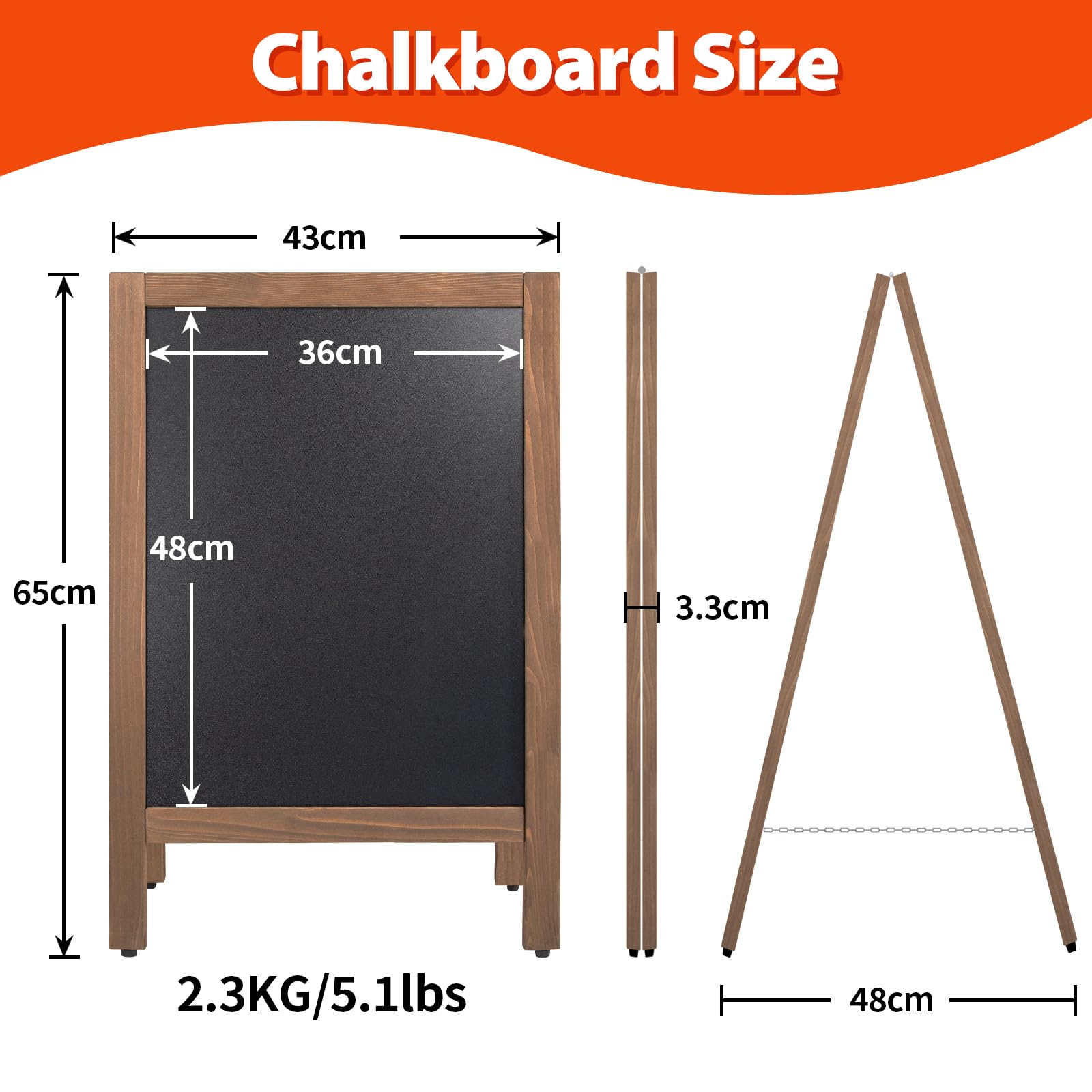 - ⚠ SMALL SIZE – NOT A GIANT! OVERALL SIZE: 43×65CM (WRITING AREA: 36×48CM). Small floor-standing chalkboard for close-up use. PLEASE CHECK SIZE BEFORE ORDERING