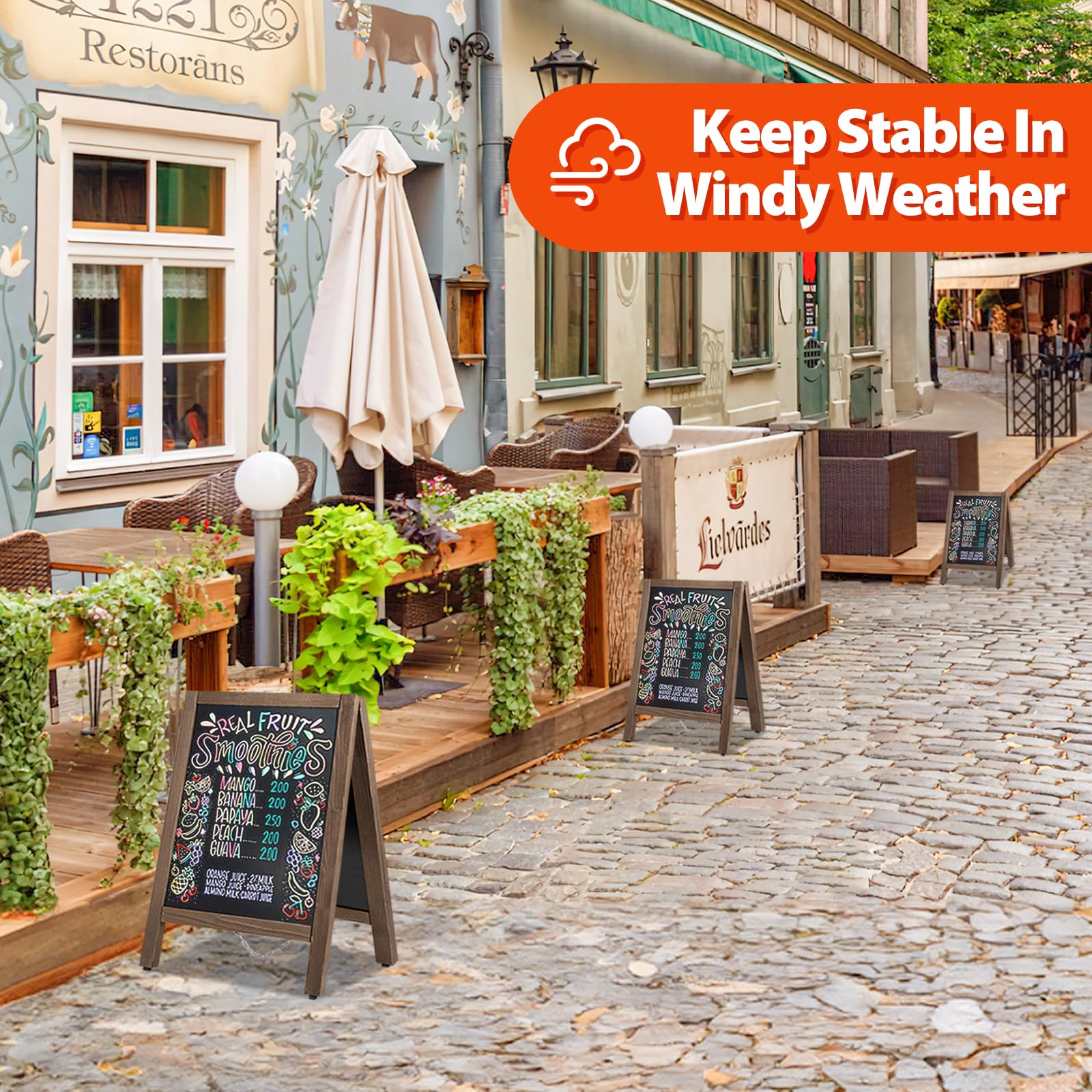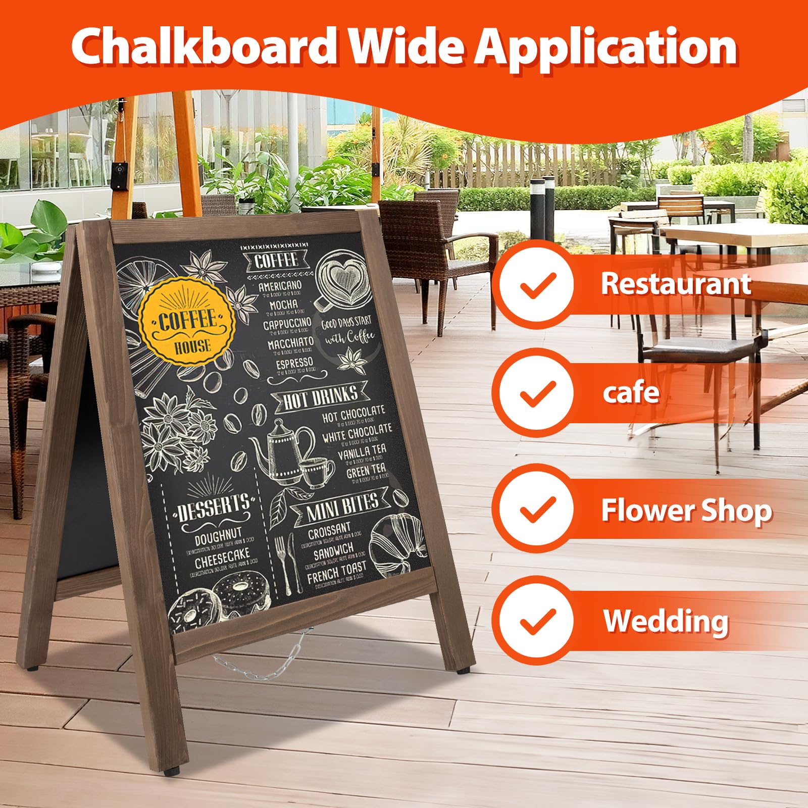 - 🔥Heavy Duty & Stable Construction:VAIIGO chalkboard signs is made of carbonized solid wood,sturdy and durable.Heavy-duty hinges help hold the chalkboard stably even in windy weather.Durable plastic slip-resistant feet that prevent it from tipping
