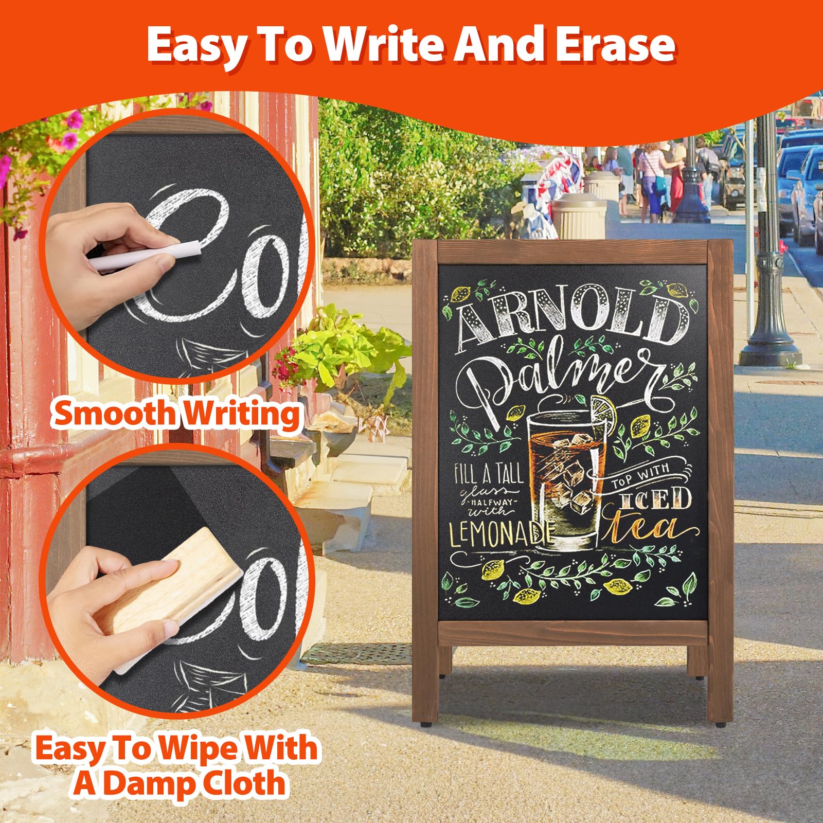 - 🔥Storage And Portability:VAIIGO chalkboard signs can be easily folded flat for easy storage and convenient transport.The free standing sandwich board Signs can be used anytime and anywhere without installation
