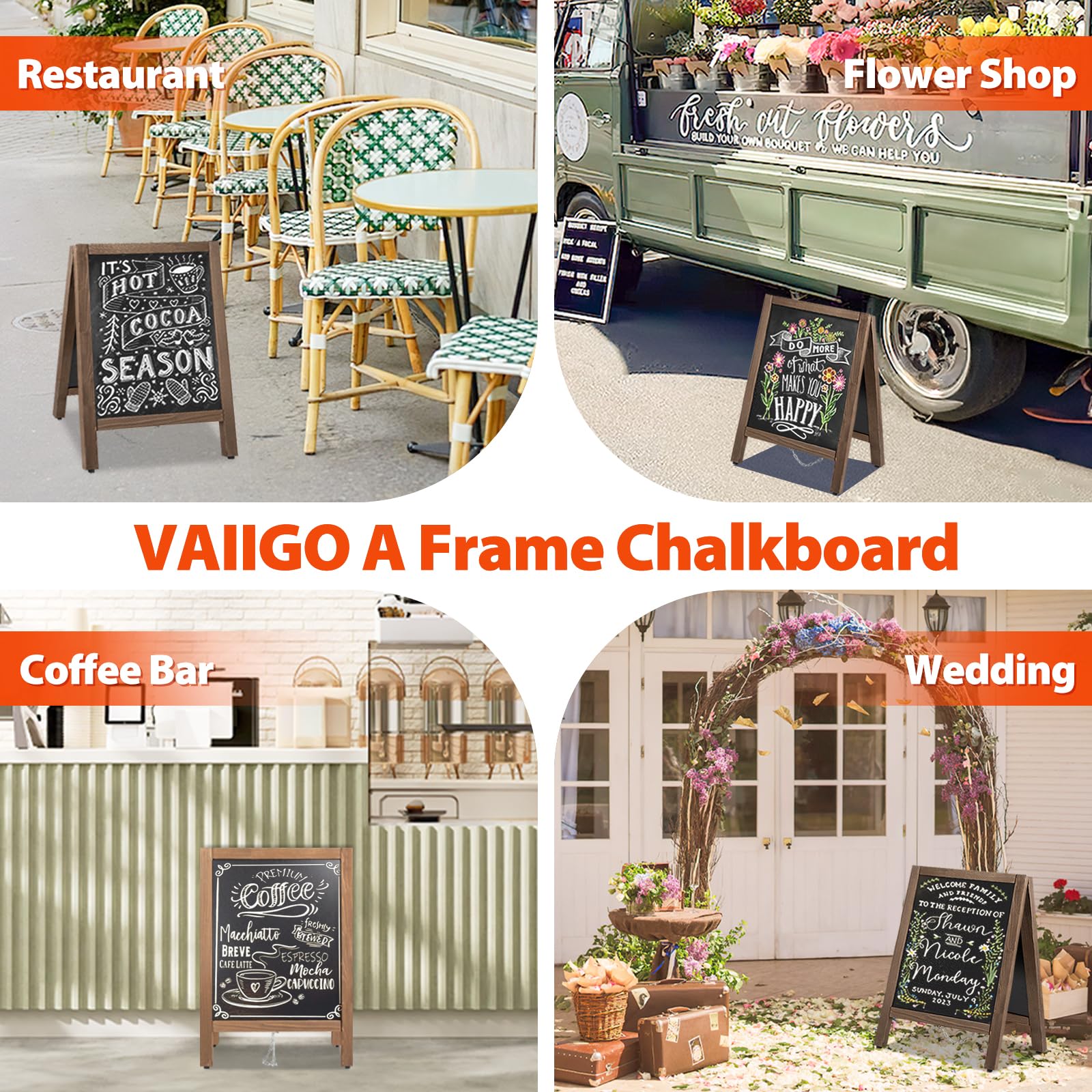 - 🔥Satisfactory Service: You will receive a 100% full refund within 30 days, if you have any dissatisfaction with VAIIGO a frame chalkboard sign.Besides,VAIIGO's professional after-sales customer service will be available 24 hours a day to solve your any problems