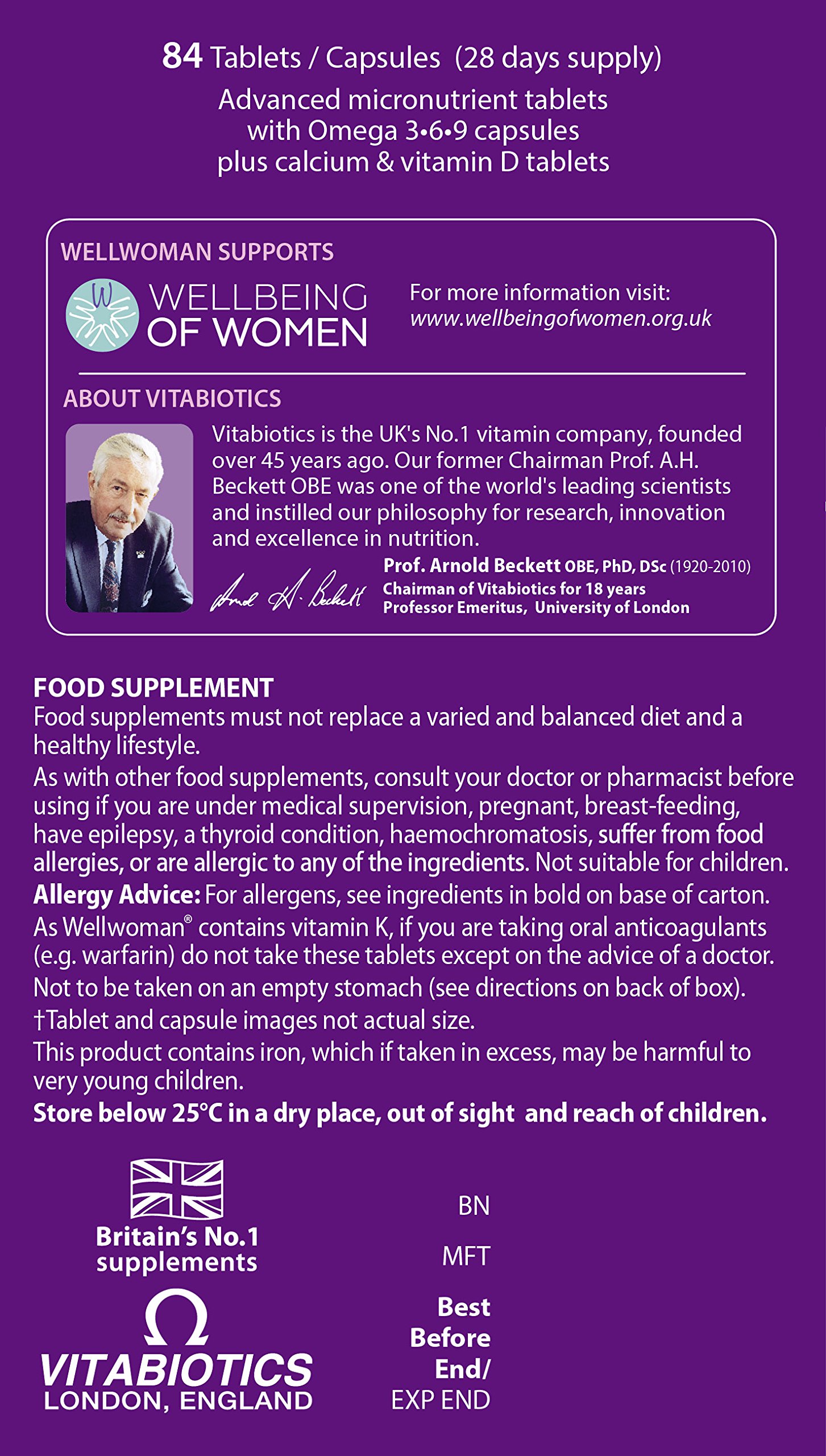 - 28x Wellwoman micronutrient vitamin and mineral tablets; 28x High purity Omega 3-6-9 capsules; 28x Calcium and vitamin D tablets