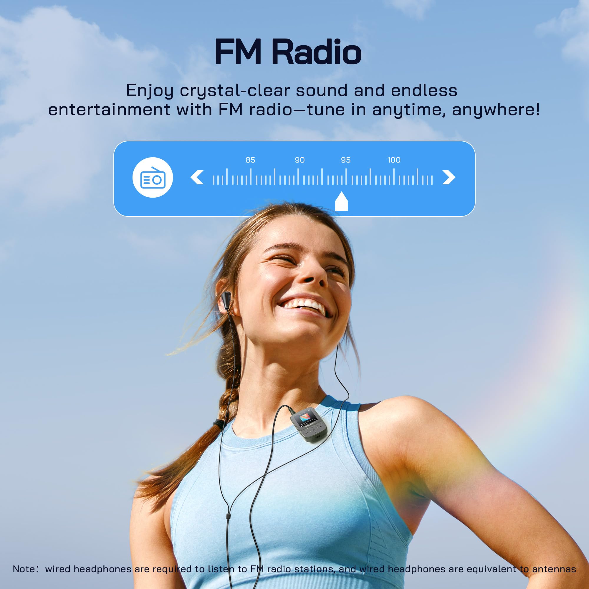 - 【Clip and Carry Freedom】WOLFANG MP3 player is designed for active lifestyles, with a sports clip, which can be easily fixed on the waist or backpack. Weighing only 28 grams, you will hardly notice it, perfect for music lovers on the move