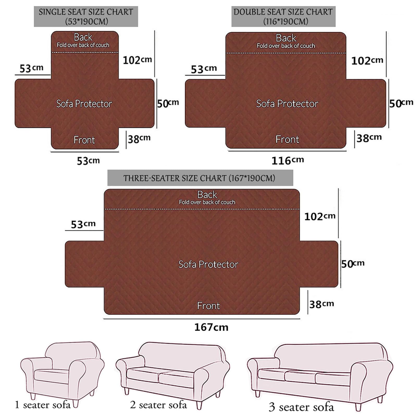 • [FITS RECLINERS WITHOUT AFFECTING FUNCTION] Available in 1-seat (53×190cm), 2-seat (116×190cm) and 3-seat (167×190cm) sizes. Suitable for manual and electric recliners, armchairs and sofas. Throw-style design does not interfere with reclining mechanisms. Easy to install or remove in under 2 minutes