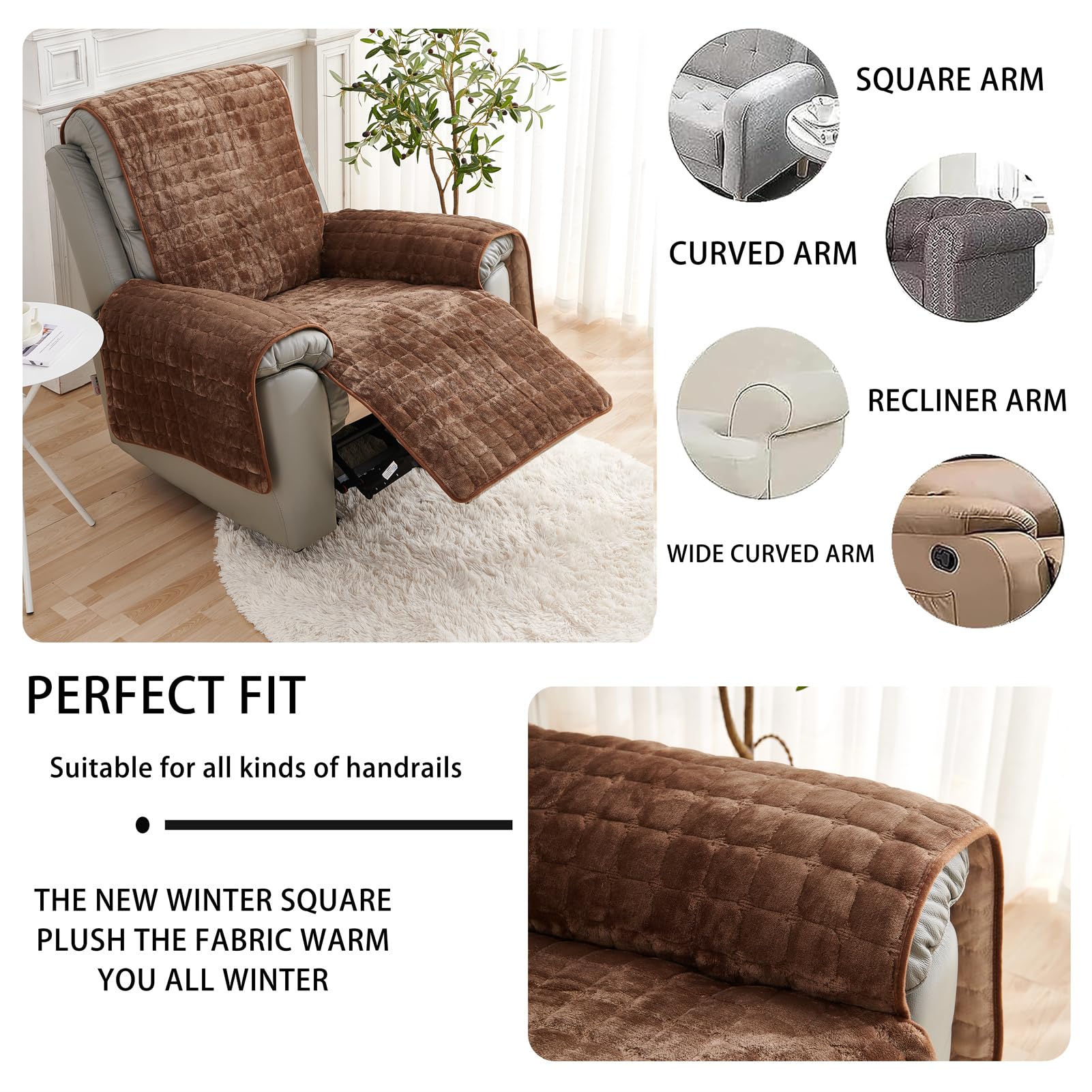 • [SOFT THICKENED PLUSH FLANNEL FABRIC] ZGDDPZA recliner sofa cover is made from upgraded thickened flannel with high fabric density and tight quilting. Soft, breathable and skin-friendly, it provides extra warmth in winter while remaining durable. The fabric resists pilling, fading and tearing for long-term daily use